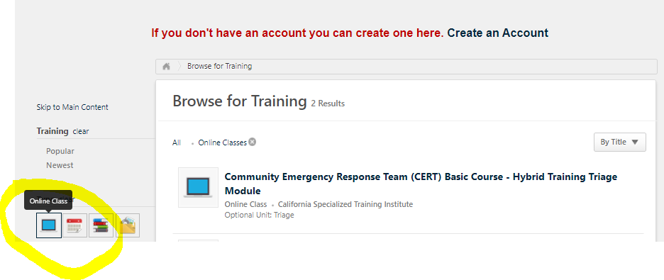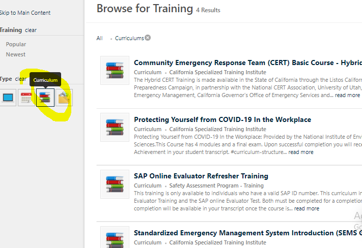 Online courses can be found by using the large Browse Training button on the front page or by navigating to Menu > CSTI Courses > Browse for Training