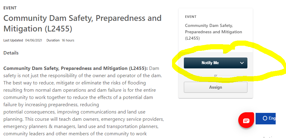 If there are no available sessions for the Event you would like to attend, you can ask to be notified by clicking the "Notify Me" button on the top right of the Event Description Page.