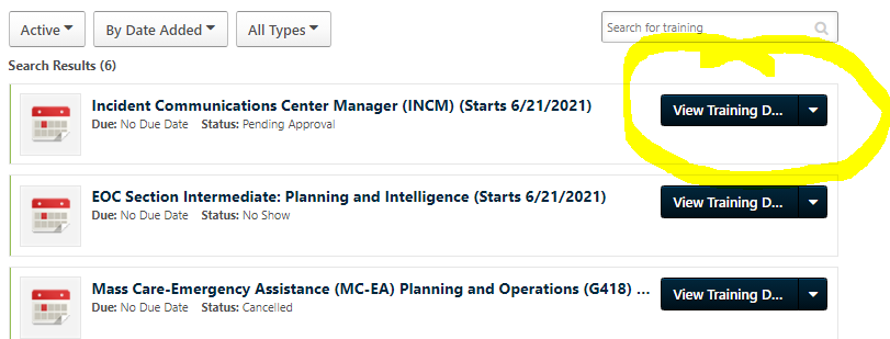 *When requesting a course please ensure you have completed any forms that may popup. Unsubmitted forms will result in automatic denial of a training approval request. You can check to see the status of form submission (if any) by clicking the "View Training Details" button to the right of the course name in your transcript. Scroll near the bottom of the page and look for "Request Forms". If none are shown, your session didn't require any. If a form name is shown, such as "Supplemental Grant Form" please ensure it says "Submitted". If the form says "Not Started" or anything else, please select the edit button, fill out the form completely and submit.
